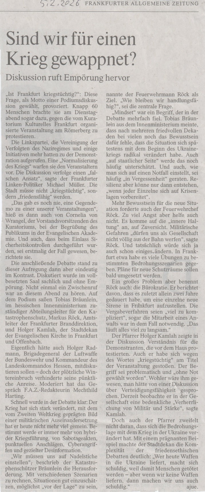 Berichte in der Lokalpresse (FNP und Regionalteil der FAZ vom 5.2.2026):