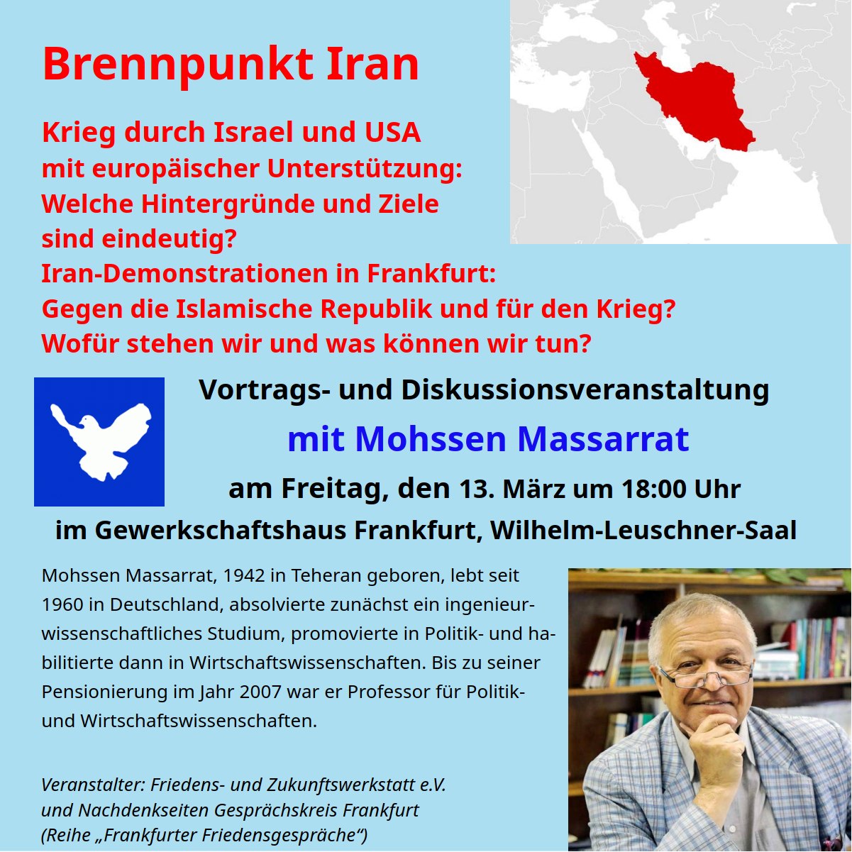 Veranstalter: Friedens- und Zukunftswerkstatt e.V. und Nachdenkseiten Gesprächskreis Frankfurt (Reihe „Frankfurter Friedensgespräche“).
